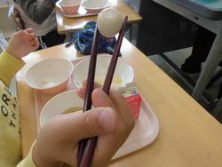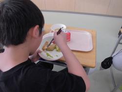 給食中は、箸の使い方にも気をつけ、たまごやさかななどの食材を上手につかんで食べる姿が見られました。