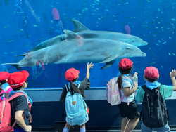 バスに乗って元気いっぱいに出発し、水族館ではグループごとに活動を行いました。館内では、時間をしっかり守りながら、鑑賞マナーもよく、海の生き物たちに興味津々の様子が見られました。