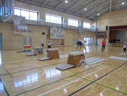 開脚跳びでは、跳ぶことだけでなく着地までを意識し、安定した動きを目指して一人一人が集中して練習に励んでいました。