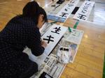 4年生と一緒に、体育館で書き初めをしました。初めての書き初めに緊張しながらも、のびのびとした字を書くことができました。力紙と千代紙を貼り、すてきな作品に仕上げました。