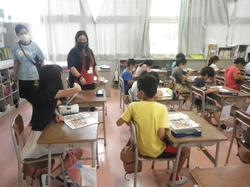 4校時、3年生の教室では外国語活動が行われていました。テキストの絵を見て、アルファベットを探しています。「Eはなかなか見つからなかったよ。」「Gはどこかな?」と言いながら、一生懸命に見つけていました。