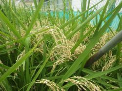 プール横の田んぼの稲穂は、今こんなに実っています。休校の中、時期を逃さずに田植えをしたおかげで、今の成長があるのでしょう。