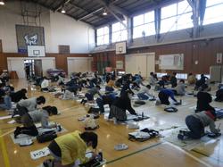 今日は3年生2クラスが1・2校時に、4年生が3・4校時に「書き初め」をしていました。書く字は、3年生が「友だち」、4年生が「美しい空」です。3年生は、初めての体育館で行う「書き初め大会」でした。4年生は、1クラスが1階ホールで残りの2クラスが体育館で「書き初め」をしていました。