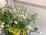 3月のとある日の花壇です。1年生と個別支援級が昨年度末に菜の花の種をまきました。1年生の方が間引きをしていなかったので、茎はあまり高くなりませんでしたがもう少しすると花が咲きそうです。三枚目の写真の白い花は何の花でしょう。ヒントは2年生です。正解は次回。