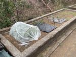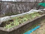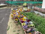 卒業式の時の花道用のプランター。全校で植えました。チューリップがうまく育たないのはなぜ・・・パンジーやビオラは元気にきれいな花を咲かせています。【クイズ】右側のトンネルの中には、3年生が4月に使う野菜が育ってきています。さて、何の野菜でしょう?