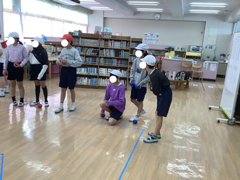 最後の第三部では大縄を使い様々な跳び方をし、学年目標である「ちえふさの木」を表現しました。