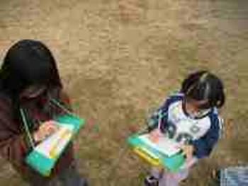 近づいて声をかけると、「春の生き物を探しているよ!」と、うれしそうに教えてくれました。