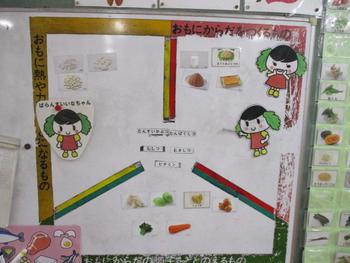 原小学校の給食室前には、子どもたちが「食」に興味をもち、正しいマナーを身に付けられるよう、さまざまな工夫がされています。