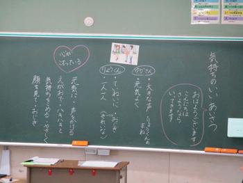 5校時には、3年生が道徳の授業で「きもちのいい あいさつ」について学びました。