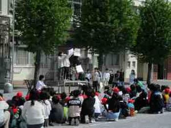朝早くから、会を運営する代表児童たちはリハーサルに励み、成功に向けて最終確認を行いました。