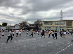 11月11日(火)中休みに決められた学年がマラソンをするマラソンウィークがスタートしました。 今日は1年生(内周)と6年生(外周)が走る日でした。 見ていると思わず走りたくなる、そんな元気いっぱいのマラソンでした。 |