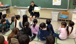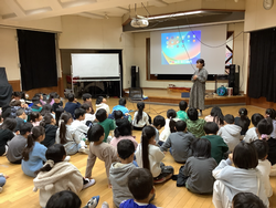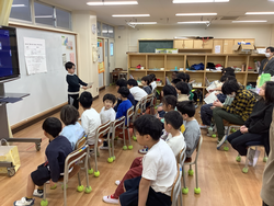 朝の時間を使って保護者の方に読み聞かせをしていただきました。「くじらぐも」でくじらや子どもたちの気持ちを考えることもしたので、お話を聞きながら登場人物の気持ちを考えている様子も見られました。次回の読み聞かせも楽しみにしている様子でした。