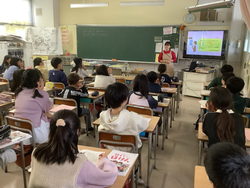 8日(火)サミットの副店長さん、案内係の方に来ていただき、スーパーマーケットの売り場のくふうや働く人のようすについて学びました。子どもたちはたくさんの質問をしていました。例えば、「商品は何種類くらいありますか。」と聞いたときには、副店長さんから、「商品の数は全部で一万種類あります。」と教えてもらいました。子どもたちは「そんなにたくさんあるんですか。」と目を丸くしていました。他にも、苦労ややりがいなど働く人の思いも教えていただき、充実した出前授業となりました。質問の仕方も上手にできていました。