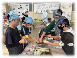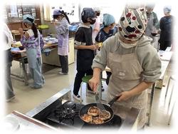 家庭科の学習で調理実習を行いました。グループで一食分の献立を考えて調理をしました。栄養バランスを考えながら主菜、副菜を考え、協力しながら計画を立てました。調理実習一つの中にも問題解決の場面は多くあり、グループで意見を出し合いながら問題の解決に向かっていく様子が見られました。調理実習後は子どもたちから「昨日の朝ごはん自分で作ったよ」という声も聞くことができ、学んだことが生活に戻っていくよさを感じることができました。