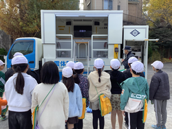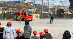 今井消防署の方に来ていただき、消防士さんの出動の流れや消防車の中に積まれている道具について学びました。また、地震を体験する地震車にも乗り、揺れが起きた時の身の守り方を教えていただきました。子ども達は、消防車に積まれているホースや放水の様子を見て、消防士さんが準備をして放水するまでのはやさにとても驚いていました。実際に災害が起きた時に、自分の命を自分で守るということを忘れずに、今後の学校生活をおくってほしいと思います。