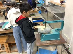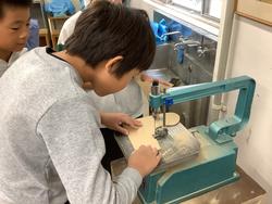 23日(月)の2・3時間目に3~6年生のグループで、外部講師に紙漉きのプロである吉原さんをお招きして紙すき体験をしました。子どもたちは、牛乳パックの紙を細かく千切ったものをチョッパーなどを使って更に細かくし、パルプ液を作りました。作る過程で吉原さんから「もっと紙を細かくしてね。」とアドバイスをいただくと、子どもたちはより力を入れて紙を細かくしていました。パルプ液を型枠に流し込み、水分を飛ばすとはがきの完成!出来上がった自分のはがきと友達のものを比べながら楽しそうに会話する姿が見られました。