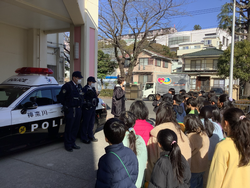 保土ケ谷警察署の方に来ていただき、事故や事件が起きた時の警察官の出動の流れや持ち物について学びました。また、パトカーにも乗り、無線機の使い方や赤色灯の付け方など車内のことを教えていただきました。子ども達は、警棒や耐刃ベストを触ったり見たりして、とても驚いていました。実際に事故や事件に巻き込まれないように、自分達ができることは何かを考えてほしいと思います。