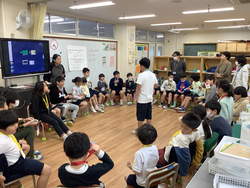 初音丘幼稚園の先生をお招きして、手遊びとパネルシアターを行っていただきました。知っている先生の登場に子どもたちも大喜びでした。あっという間の時間を子どもたちは最後まで楽しむことができました。