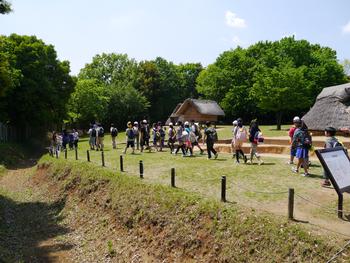 博物館に併設されている大塚歳勝土遺跡では、弥生時代の住居や倉庫の復元されたものを見学し、当時の人々のくらしについて考えていました。