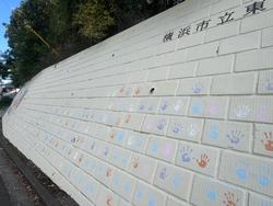 50周年記念の壁画制作もクライマックスです!10月17日、ひぐみっ子一人ひとりが、色とりどりの花に見立てた手形を壁画に付ける作業を行いました。ぐみのみちゃん・ぐみ太郎くんのイラストも登場し、素敵な壁画になってきましたね。完成まであと一息です。