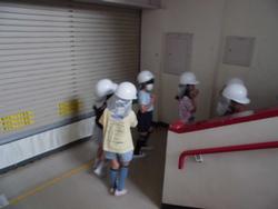 7月4日(火)、火災を想定した避難訓練が行われました。 防火防煙シャッターがおりた状態を再現して訓練を行いましたが、定められた順路を通って、すみやかにグラウンドへ避難することができました。 |
