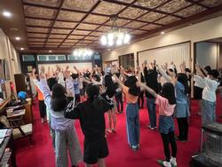 昨晩は、美味しい夕食をいただき、入浴、お買い物と全行程を終えました。夜はすぐに寝ることができたようです。日光は昨夜から雨、今も降り続いています。ロビーで朝の集いを行い、ラジオ体操でリフレッシュ。全員元気で朝食、退館式を終え、これから華厳の滝に向かいます。 |