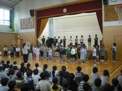 3年生の音楽朝会でリコーダー奏と斉唱の発表をしました。今月末、旭区児童音楽会で演奏する内容で、リコーダー奏は「地平線」。斉唱は「友だちシンドバッド」です。全校児童とたくさんの保護者の前で、堂々と発表することができました。リコーダーはきれいな音色でした。また、斉唱は元気いっぱいの3年生にぴったりの曲想でした。美しいハーモニーに会場は、大きな拍手でいっぱいになりました。