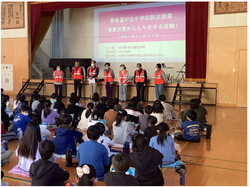 11月21日(金)に、防災拠点運営委員会の方々をお招きし、地域防災の出前授業を行いました。授業では、地域での防災の取り組みについて具体的に説明していただいたほか、防災備蓄庫の見学やトイレパックの実験、手回しランタン体験などを行いました。
