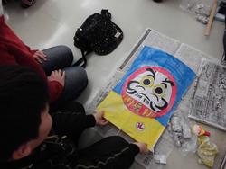 3年生は初めて和紙を使って「袖凧」を作りました。