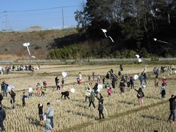 この日は風が弱く、凧をあげるのに苦労しましたが、時折吹く風に乗ると