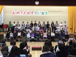 2月19日に4年生が「おめでた10才思い出会」を行いました。体育・音楽・劇グループの発表を通して10年間の成長を発表しました。また、10才宣言のスピーチや呼びかけのことば、合唱を通して支えてくれた方々への感謝の気持ちや、将来への希望を伝えることができました。4年生児童一丸となって、感謝の気持ちを伝えることができました。10年目の節目となる会を、温かな気持ちで終えることができたと思います。お忙しい中お越しいただいた保護者の皆様、ありがとうございました。