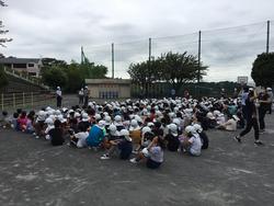 9月1日に、総合防災訓練を実施しました。震度7の地震が発生し、放送が使えない設定での避難訓練を行いました。今年度は感染症予防と熱中症対策のため、引き渡し訓練は行いませんでしたが、子どもたちは真剣に訓練に取り組みました。