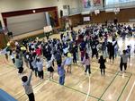 3時間目に全校児童でスポーツフェスティバルに向けての集会を行いました。スポーツフェスティバル実行委員、応援団、運動委員会が運営する集会で火曜日のスポーツフェスティバルへの意欲を高めることができました。