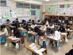 1・2年生は、各教室でフエルトペンでの書初めを行いました。