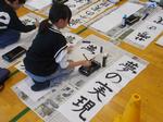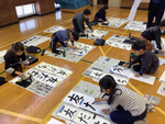 1月8日、9日に3年生以上の児童が、体育館で書初めに挑戦しました。
