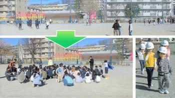 本日は、予告なしの避難訓練。中休みに入り、教室で話したり、校庭で遊んだり、図書館で本を読んだりする子どもたち。校庭では、思い思いの場所で楽しそうに遊んでいた子どもたちでしたが、緊急地震速報が流れると素早く校庭の中央に集まって姿勢を低くして避難する姿が見られました。その後、理科室から火災発生の放送が入り、全員が校庭への避難開始。様々な場所からの避難でしたが、「お・か・し・も」を守ってスムーズに行動する姿が見られました。また、火災が起こっている想定のため、ハンカチなどで口元をガードしながら避難できた子の数が増えてきたように感じます。毎回の訓練で話している『どこで何が起こったのかを知ること』『自分の命を守るために行動すること」の再確認では、4年生がしっかり覚えていて感心しました。いつ発災しても自分自身で安全を確保することができるよう、日頃の訓練を大切にしてほしいと願っています。