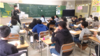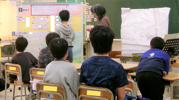 2組の子どもたちは、先月開催された地区センターまつりでのステージ発表後、1・3組でも披露しました。今日は、自己評価と他者評価(学年交流でもらった感想)をミックスさせ、自分たちの活動の良さと課題を整理・分析する場面。座標軸を活用し、短冊型のカードを移動させながら、熱心に話し合っていました。子どもたちからは、「4-3との交流会は、4-1よりも緊張が少なかった。多分、練習したからかも。だから、連絡をいっぱいするといい。」という意見も。今後も、手話ダンスの専門家との繋がりを大切にし、様々な人との関わりを通して学びを深めてほしいと願っています。