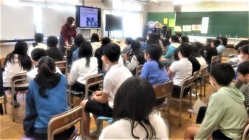 本日は、5・6年生を対象とした情報モラル教室がありました。今回のテーマは『ネットや生成AIの良い使い方とは?』です。あるデータによると、約2割の小学校5・6年生がチャット等を通して誰かと繋がった経験があるとのこと。しかし、“ネッ友”の実像が不明なまま繋がり続けていくと、事件に巻き込まれるケースになってしまう危険があることを学びました。「“ネッ友”から直接会おうと誘いを受けたらどうするか」については、子どもたちも真剣に考えている様子。また、生成AIについては、人間の手助けをするために作られたものであること、間違いもあること、そのまま自分の作品として出すことはNGであること、生成AIが正しいかどうかを判断するのは人間であること等を教えていただきました。ネットや生成AIだけに頼るのではなく、自分の目で確かめながら上手に使いこなしていく必要がありますね。