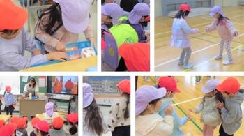 音楽交流会で一緒に演奏した10月に続き、今回は朝の会から一緒に過ごしました。朝の会では、当番の子のスピーチを聞いたり、歌を歌ったり。体育では、お話しをしながらグランドを周ったり、『いろはにこんぺいとう』を楽しんだりしました。また、音楽では『もりのたんけんたい』を歌ったり、楽器で演奏したり。「いっぱい歌ったから、お腹がすいたよ。」との呟きも。4時間目の外国語活動では、ハートちゃんのふくわらいを一緒に楽しみました。友達とペアになり、“up” “left”などと上手にリードしてあげながらできたハートちゃんを見合いながら、笑顔が弾けていました。素敵な時間です。