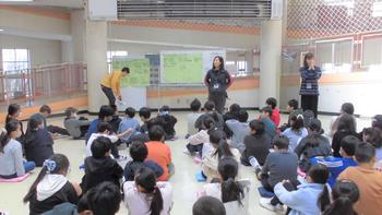 今朝、今年度お世話になったIUIとAETの先生とのお別れ会がありました。国際理解教室では、IUIの先生から韓国の食べ物・遊び・服など様々なことを教えていただきました。休み時間には、子どもたちが윷놀이(ユンノリ)を楽しむ姿も。お隣の国ですが知らないことも多く、遊びを通して他国の文化を感じながら学ぶことができました。また、英語ではAETの先生が大活躍。休み時間には子どもたちと校庭で鬼ごっこをする場面も見られました。IUIの先生からは、「年に5回でしたが、一緒に活動したことはずっと忘れません。新しい学年になっても、素敵な時間を過ごしてください。」とのメッセージをいただきました。감사합니다. また、AETの先生からは「一緒にたくさんの思い出をつくることができてありがとうございました。英語を学び続け、たくさんの友達をつくってください。楽しむことを忘れないでね。」とのメッセージ。また、どこかでお会いしたいですね。Thank you!