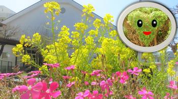 霞がかかったヒガシナの朝。環境委員会の子どもたちと環境レンジャーの方が一緒に植えた満開のツルコザクラとシジュウカラの囀りが、最終日の子どもたちを迎えてくれました。チューリップも大きくなり、新1年生の入学を待っているかのよう。