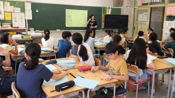 2組のヒガシナタイムにも動きが見られました。夏休み前から栽培を始めたエダマメを夏休み後に収穫して食べてみると『黒い豆が多かった』ということをもとに、今日は振り返りをする時間。ファイルに綴じられているカードには一人一人が考えたことが書かれていて、担任からのコメントも書かれています。嬉しそうに読む子、何か思いついたような表情をする子など様々ですが、こうした小さな積み重ねが学びの深まりにつながると思います。隣の友達と話した後は、グループでの情報交換タイム、そしてクラス全体での話し合いというように、学習形態の工夫が見られました。子どもたちからは、「水やりをがんばったけど、夏休み中は難しかった。」「鳥や虫に食べられちゃったから、防鳥・防虫対策をした方がいいと思う。」などの意見が出されていました。子どもたちが本気になって取り組む姿を期待しています。