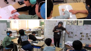 4組の➀の教室では、ヒガシナタイムの時間に『漬け物作り』をしてきました。浅漬け・福神漬け・ぬか漬けというように、漬ける時間が長くなって少しずつレベルアップ中。今年度も地域の方にご協力いただきながら、本物の畑で栽培した野菜を使っています。子どもたちは「○○さん!こんにちは。」「◇◇が△△になっちゃうのは、どうしてですか?」等、会話が弾んでいる様子。昨年度以上に関わりが深まっていることが嬉しいですね。現在は、これまでの取組を昨年度のようにパネルシアターで表現する活動にチャレンジしています。教室に行ってみると、どんなことを伝えたいかについてペアの友達と一緒に考えていました。「福神漬けが他の漬け物とは違うことを伝えたい。どうしてかというと、福神漬けは7種類の野菜を使っていて縁起がいいから。」と発言する場面も。みんなの考えや思いに折り合いをつけたり、互いの良さを認め合ったりしながら、今後も活動を深めてほしいと願っています。