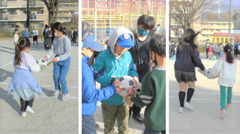 今回は、新聞紙でボール運びリレー。樹木班ごとに集合する際には、6年生が下級生に声をかけ、素早く並ぶことができました。ペア学年と2人組になってからも、6年生がペアの1年生に「一度練習してみようか。」「新聞紙のここ(端)を持って、ボールを包むように持ち上げられる?」等と優しく声をかけている姿が印象的です。ペア学年で力を合わせて走る際の表情はにこやかで、カップで踊った曲に合わせてダンスする場面も見られました。和気藹々とした雰囲気に包まれる異学年交流は、“ヒガシナのすてき”です。
