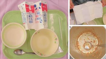 一年間のゴールが近づいてきた1年生。給食の時間に教室に行ってみると、みんな行儀よく座っています。トレーのどこにどの皿やスプーンを置けばよいのか迷うこともなく、にこにこ笑顔で食べていました。配膳台の食缶を覗いてみると、何と空っぽ。「校長先生、何見てるの?みんなでおかわりしたんだよ。」「ぼく、おかわりした。」と、嬉しそうに話しかけてくれました。また、パンが入っていた袋も上手に折り曲げておにぎりの形に。そして、苦手だった牛乳パックもスムーズに開く姿が見られました。一年間で立派に成長した1年生の子どもたちが頼もしく感じられます。どのメニューが思い出に残っているか聞いてみると、「あげパン」「カレー」「焼きそば」「から揚げ」「春巻き」など様々。食缶を給食室に戻す際の挨拶もバッチリです。