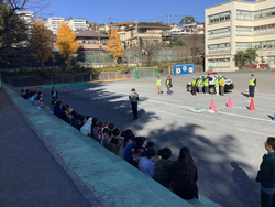 12月5日、1年生は校庭で「交通安全教室」を行いました。