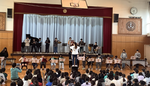 今日の集会はどういった内容なのか下級生に知らされてはいません。下級生が、体育館に入るとステージ前には準備万端の6年生が待っててくれてます。6年生からの贈り物は「ルパン3世のテーマ」「名探偵コナンのテーマ」合奏2曲です。6年生はこの日のために音楽の時間だけでなく中休みなども練習してきました。素敵な演奏に下級生は6年生へのあこがれの気持ちをまた一つ高めました。