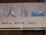 本校では、今週から「人権週間」として、みんなが安心して過ごせる学校を目指して、様々な取組をしています。集会では、運営委員会の子どもたちが、劇を通して、声かけや挨拶の大切さを伝えました。また、25日(火)には、5年生の出前授業で、目の見えにくい星川さんと小泉さんにお越しいただき、クイズやゲームも行いながら、「配慮」「仲間外れをしない」「みんな違ってあたりまえ」が大切であることを学びました。これから他の学年でも、人権にかかわる出前授業を行っていきます。