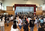 今月25日の運動会が近づいてきまいた。運動会を盛り上げるのは5,6年生の応援団です。応援団が集まり、振り付けや音楽を考えたダンスを集会でお披露目しました。全校児童が集まるのは初めてでしたが、みんな盛り上がり体育館は熱狂に包まれました。これから運動会が近づくにつれて学校が盛り上がっていきます。