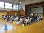 子どもたちは、10人ずつのグループになって、出発! 保護者の方は体育館で説明を聞いたり、用紙に記入したり。